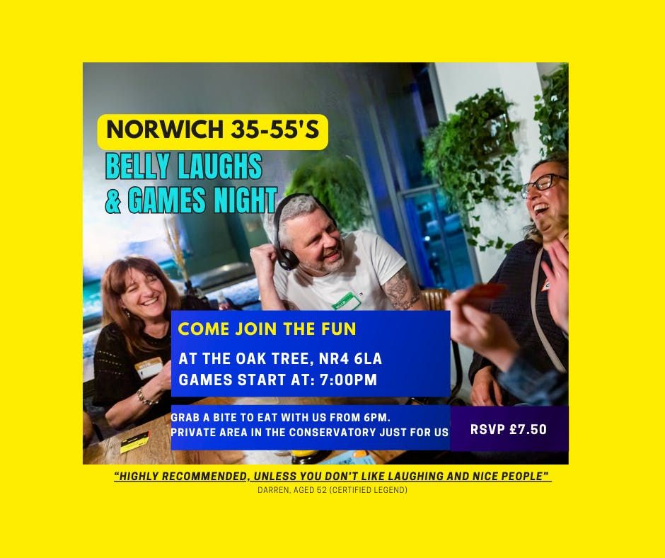 Who says weekends should have all the fun? Join us for a mid-week, laughter-filled, evening at the Norwich 35–55s EPIC Games Night - a 5* rated social evening full of cheeky challenges, questionable team names and the kind of belly laughs you’ll still be giggling about days later!Come solo, with your partner or bring along a mate!