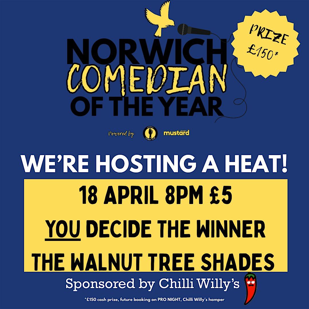 Who will be this year's Norwich Comedian of the Year... You decide! With £150 prize up for grabs and goodies from our sponsor Chilly Willy's it really is all to play for!