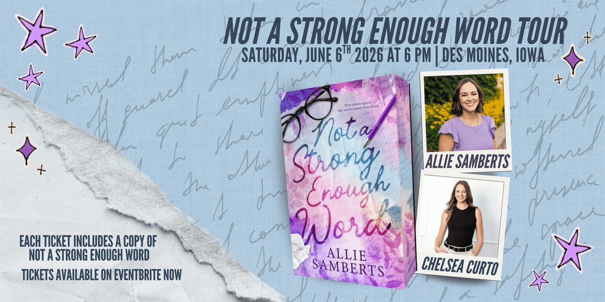 Join us to celebrate the release of Not a Strong Enough Word by author Allie Samberts. Allie will be in conversation with Chelsea Curto, author of the DC Stars series and In Stormy Weather!