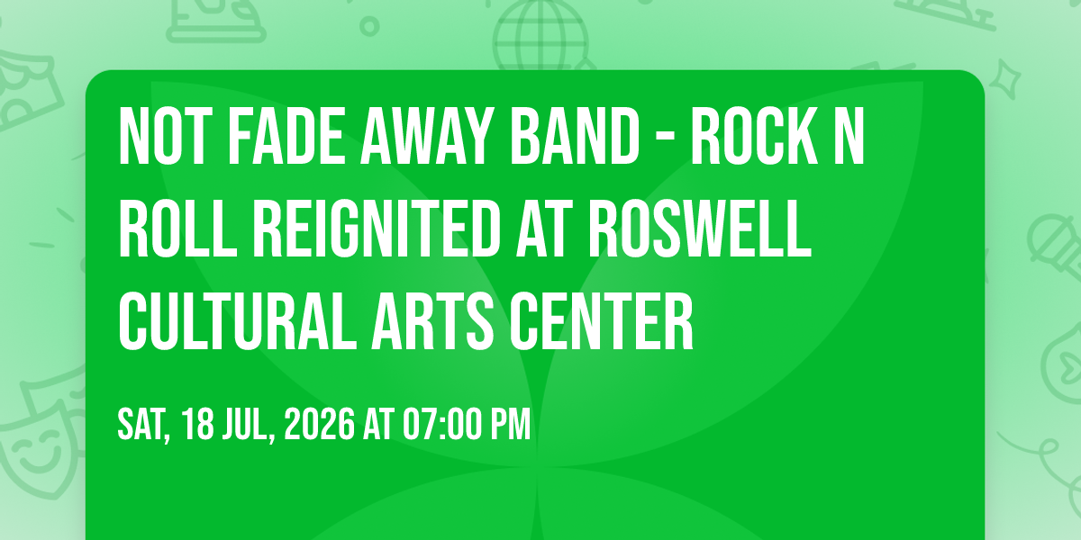 ✨ Enter a world of endless possibilities at Not Fade Away Band - Rock n Roll Reignited at Roswell Cultural Arts Center, where every moment tells a story! 🏛️ The stunning Roswell Cultural Arts Center in vibrant Roswell, GA transforms into a realm of wonder on July 18th, 2026 at 07:00 PM. 🌟 They have crafted an experience that goes beyond the ordinary, combining elements of surprise, delight, and pure entertainment. Every detail has been thoughtfully considered to ensure your journey with us is nothing short of extraordinary. 🎯 Join fellow adventure seekers and memory makers in this celebration of imagination and innovation. 🎊 Reserve your spot today and be part of something truly special!