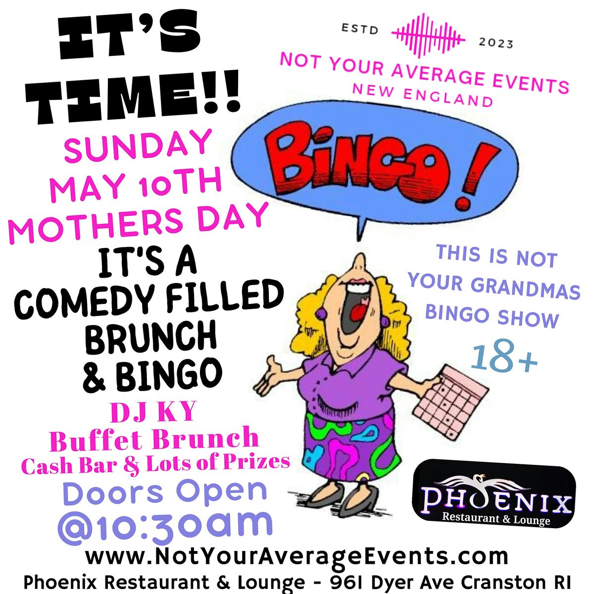 Not Your Grandma's Comedy Bingo Brunch Mothers Day in Cranston RI