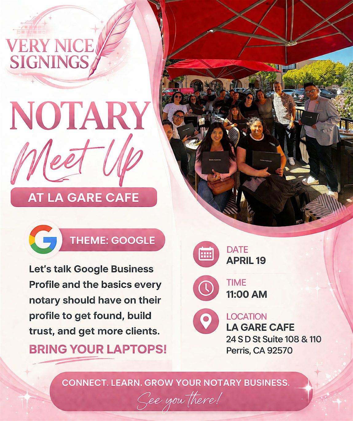 Notary meetup to network. Learn the basics about your google business page.