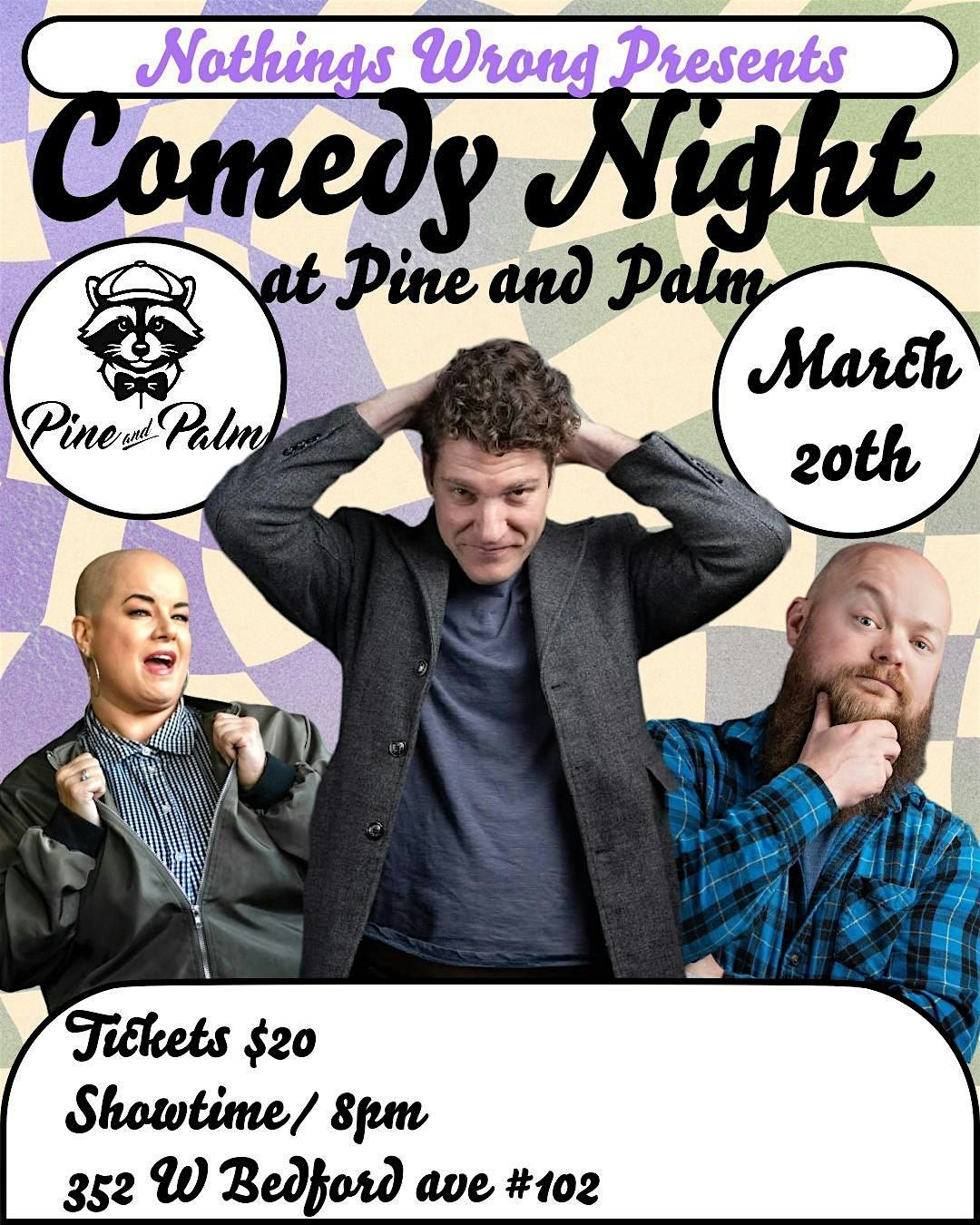 Nothing Wrong Presents Comedy Night at Pine & Palm w/ John Hacker, Andrew Boydston, Dana Turner, Eric Gomez, Ethan Wallen, and Vince Accardo