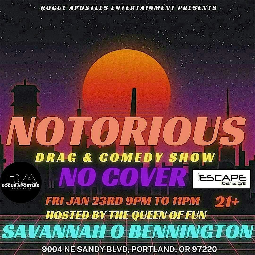NOTORIOUS Drag & Comedy Show At Escape Bar & Grill