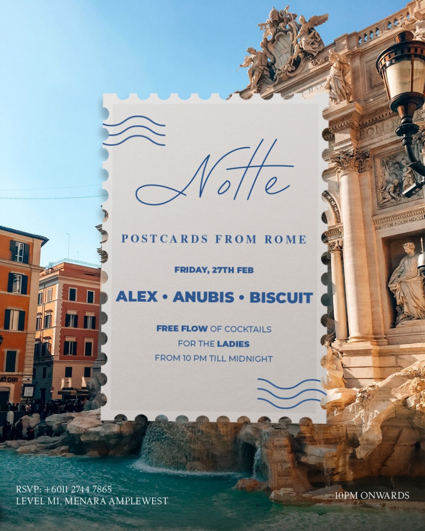This Friday , February 27th at @nottekl from 10 PM onwards, Postcards from Rome returns with a new edition filled with groove and high energy - from house anthems to party tracks to italo classics. Featuring Alex, Anubis and Biscuit on deck duties . Free entry . 🎶💃🎉