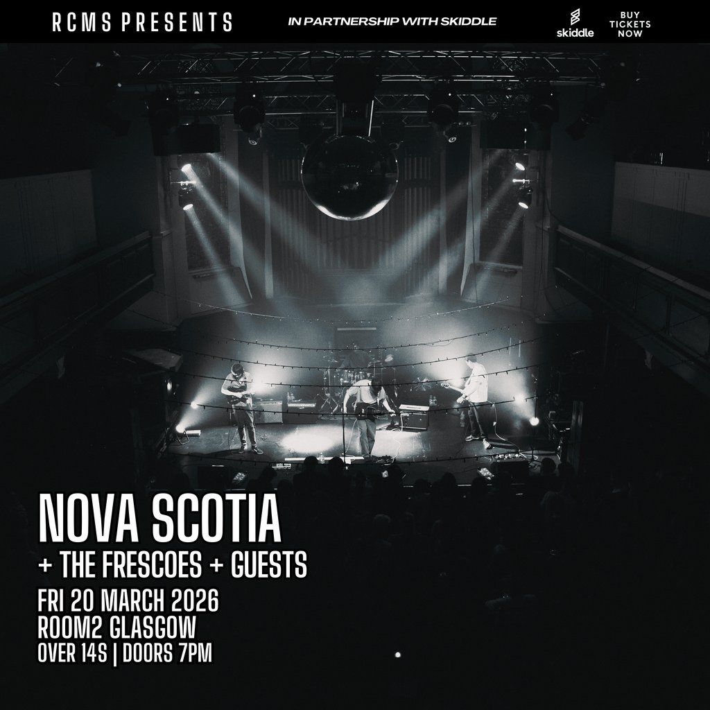 RCMS Presents.......Nova Scotia live at Room2 Glasgow - Fri 20th March - Over 14s welcome. Doors open 7pm.Music Genres : Rock, Indie, Indie Pop