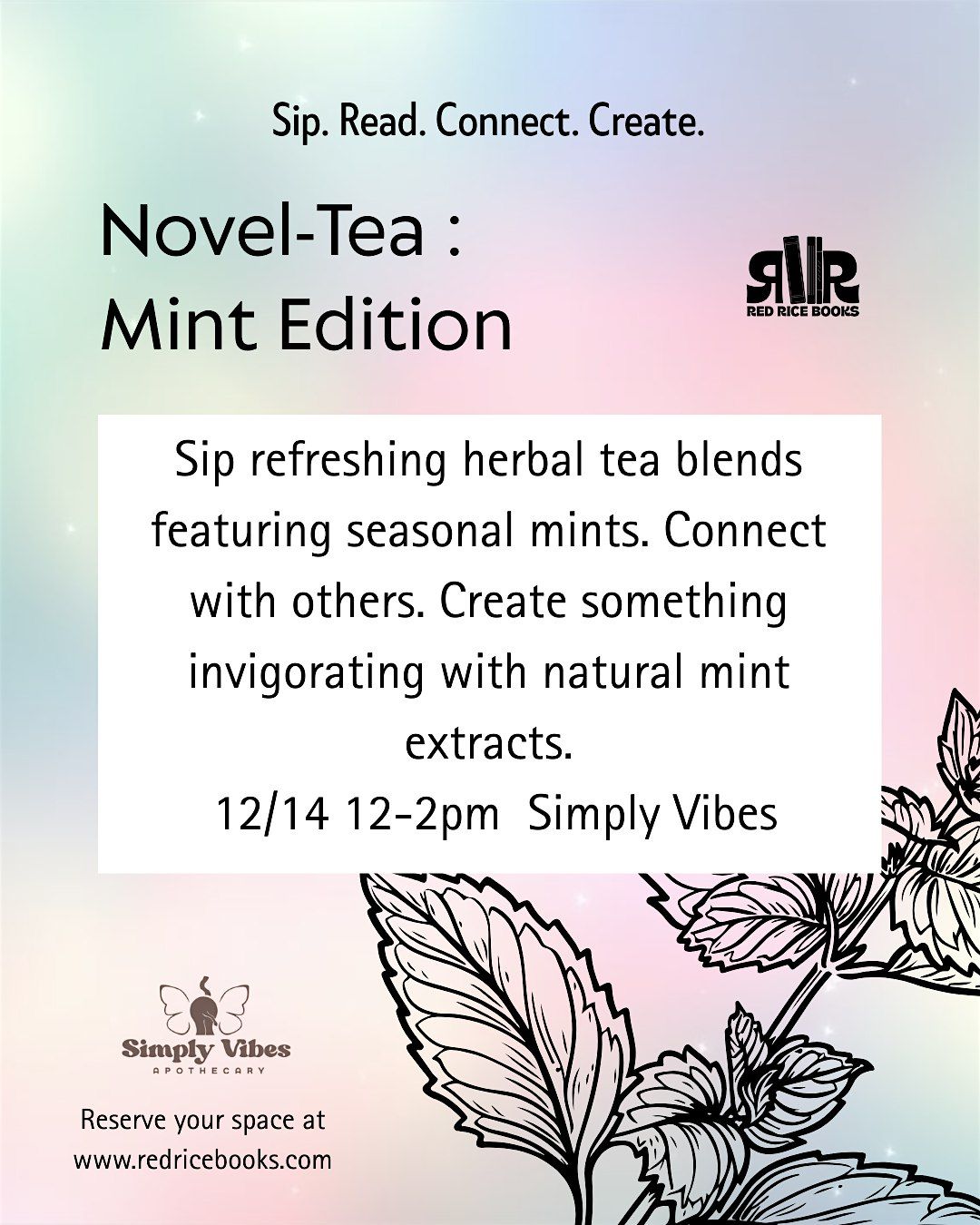 This December at Novel-Tea, we’re celebrating the crisp, refreshing world of mint. From peppermint and spearmint to lesser-known varieties, this month’s tea experience invites you to embrace the cooling clarity and festive nostalgia that mints bring to the season. Our featured blends come from Simply Vibes Apothecary.