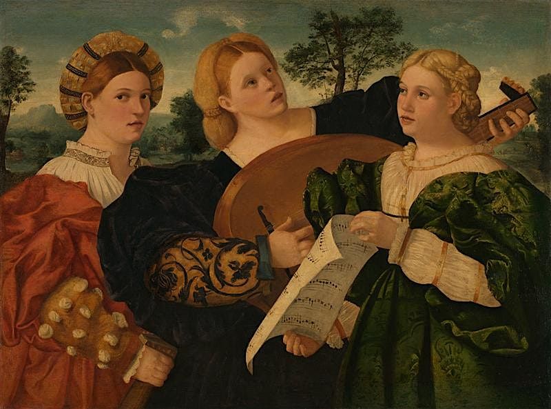 The painting is A Concert, made in Venice in the 1520s, and is reproduced by kind permission of The National Gallery.