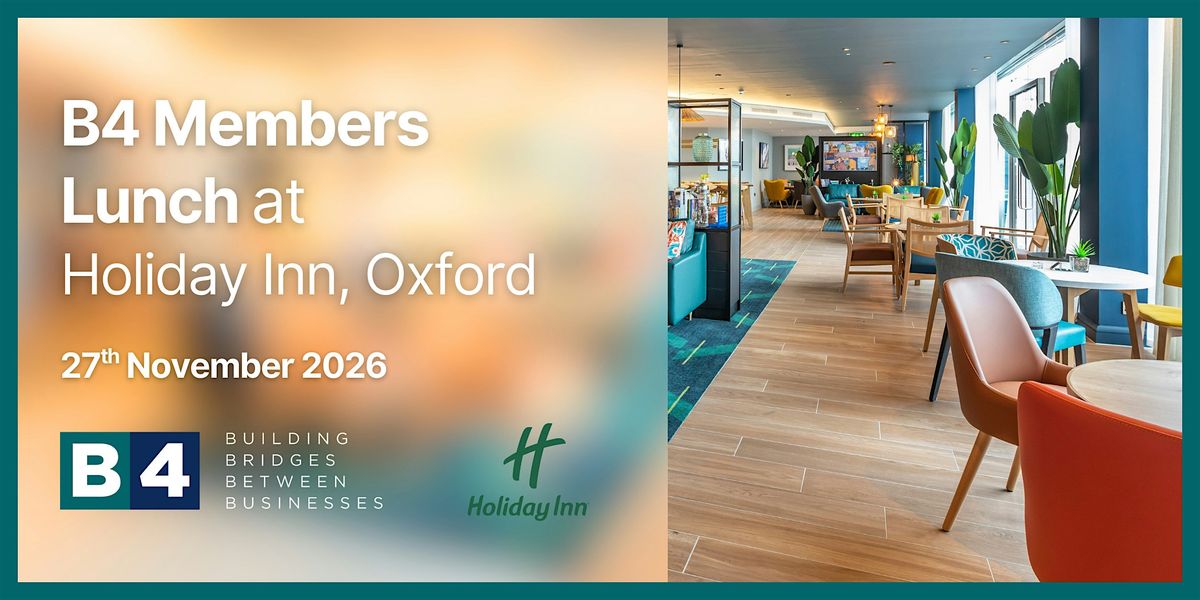 Join B4 Members for a relaxed lunch at the Holiday Inn Oxford. There’s no formal structure, just come along to connect with B4 Members whilst enjoying a fabulous two course meal with drinks included.