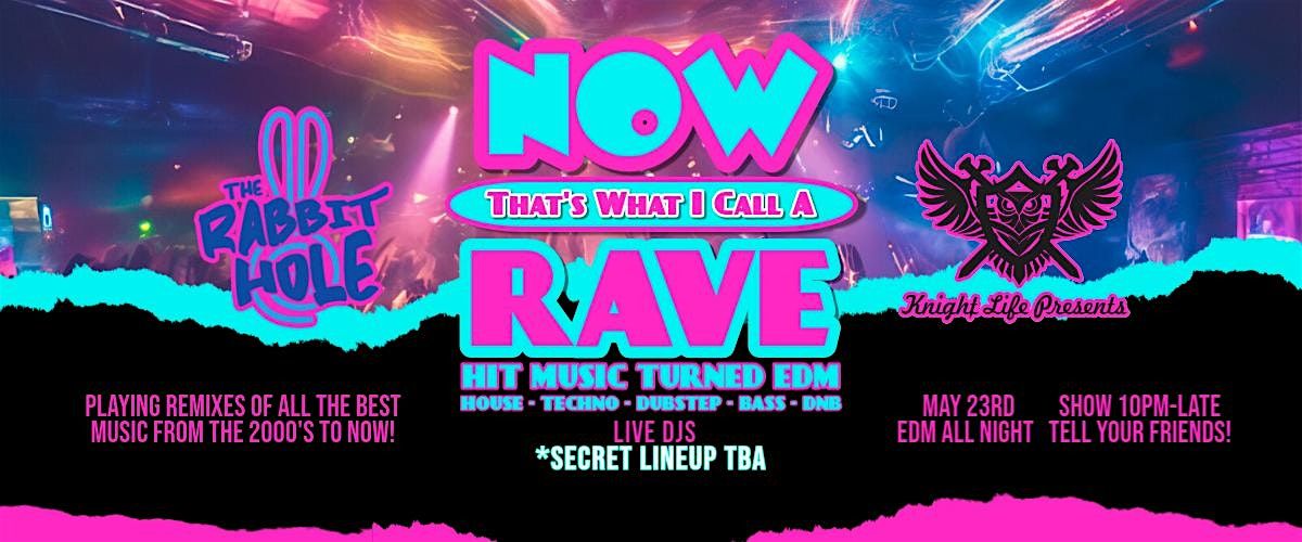 Now Rave is a celebration of hit music we all grew up with! The night features remixes of all your favorites from the 90's, 2000's, 2010's and today making this the ultimate rave experience for first time ravers or 100th time ravers!