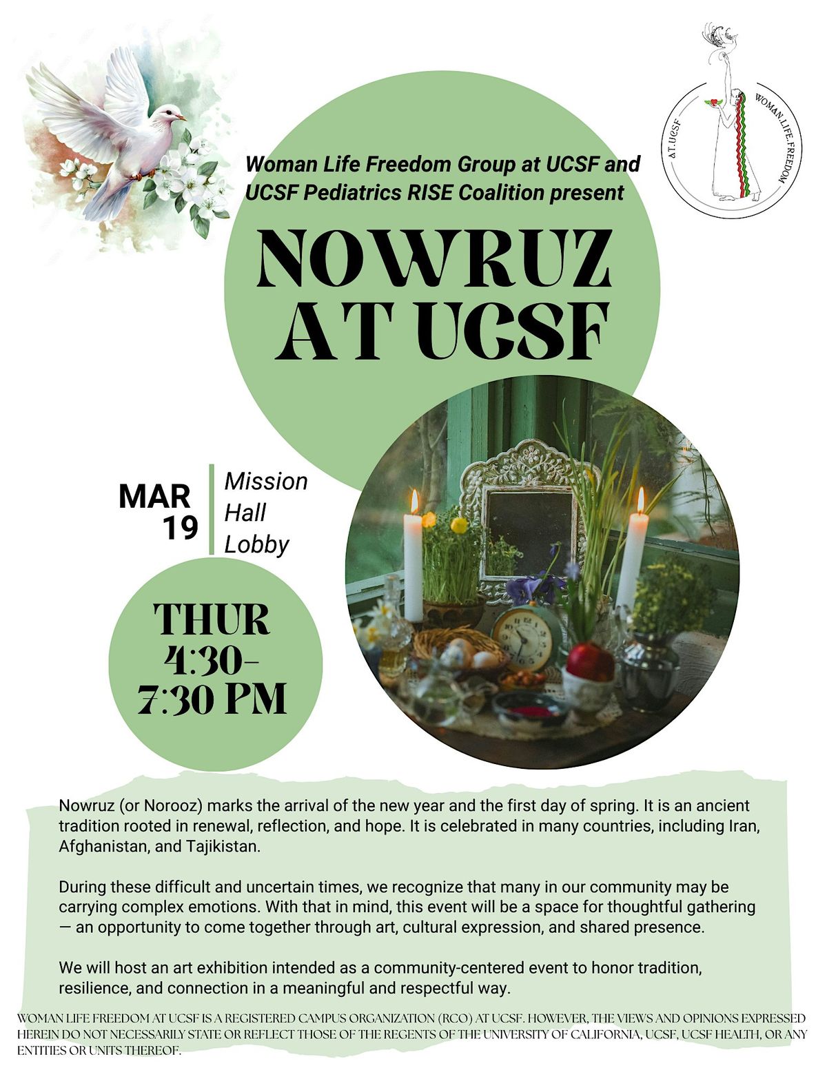 Please join us for Nowruz at Mission Hall, UCSF Mission Bay, organized and hosted by and UCSF Pediatrics RISE Coalition.