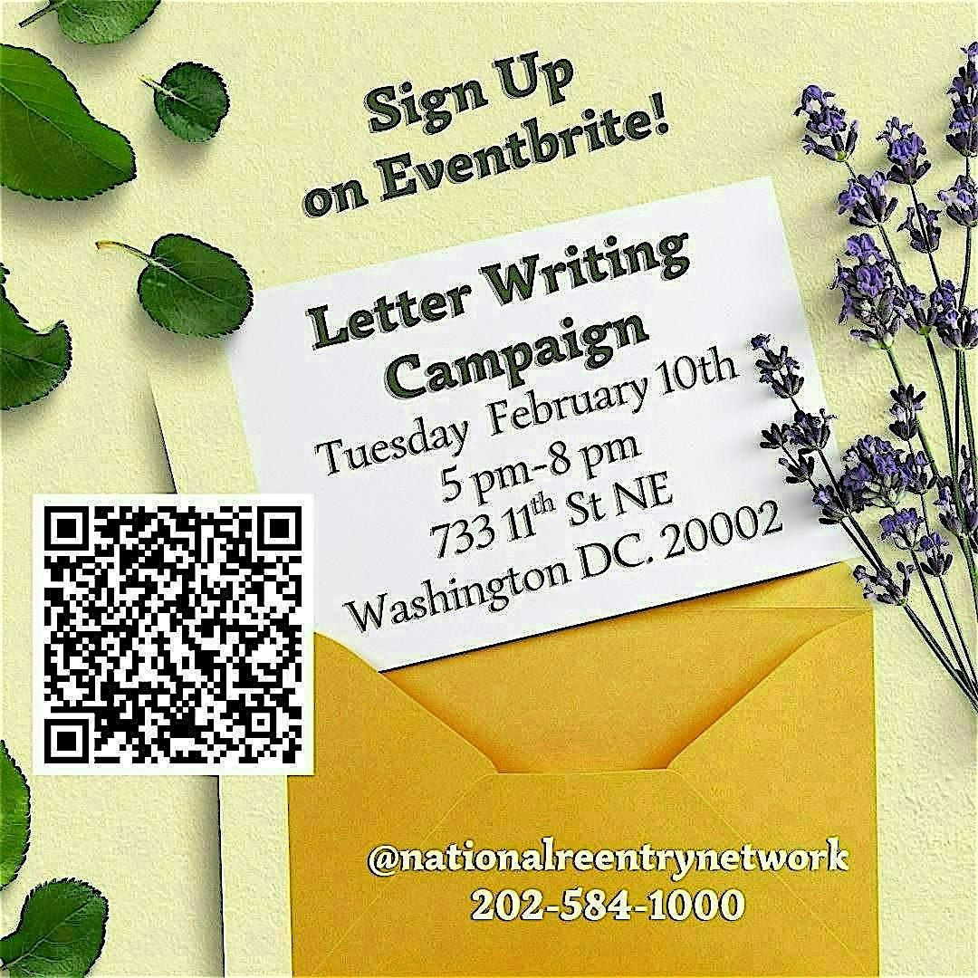 Join us in person for the NRNRC Letter Writing Campaign! It’s a great chance to express your thoughts, connect with others, and make a difference in the lives of those housed at DC J*il. Bring your creativity and make your voice heard. Whether you're a letter-writing pro or just curious, everyone’s welcome! Come hang out, write some letters, and be part of something awesome.