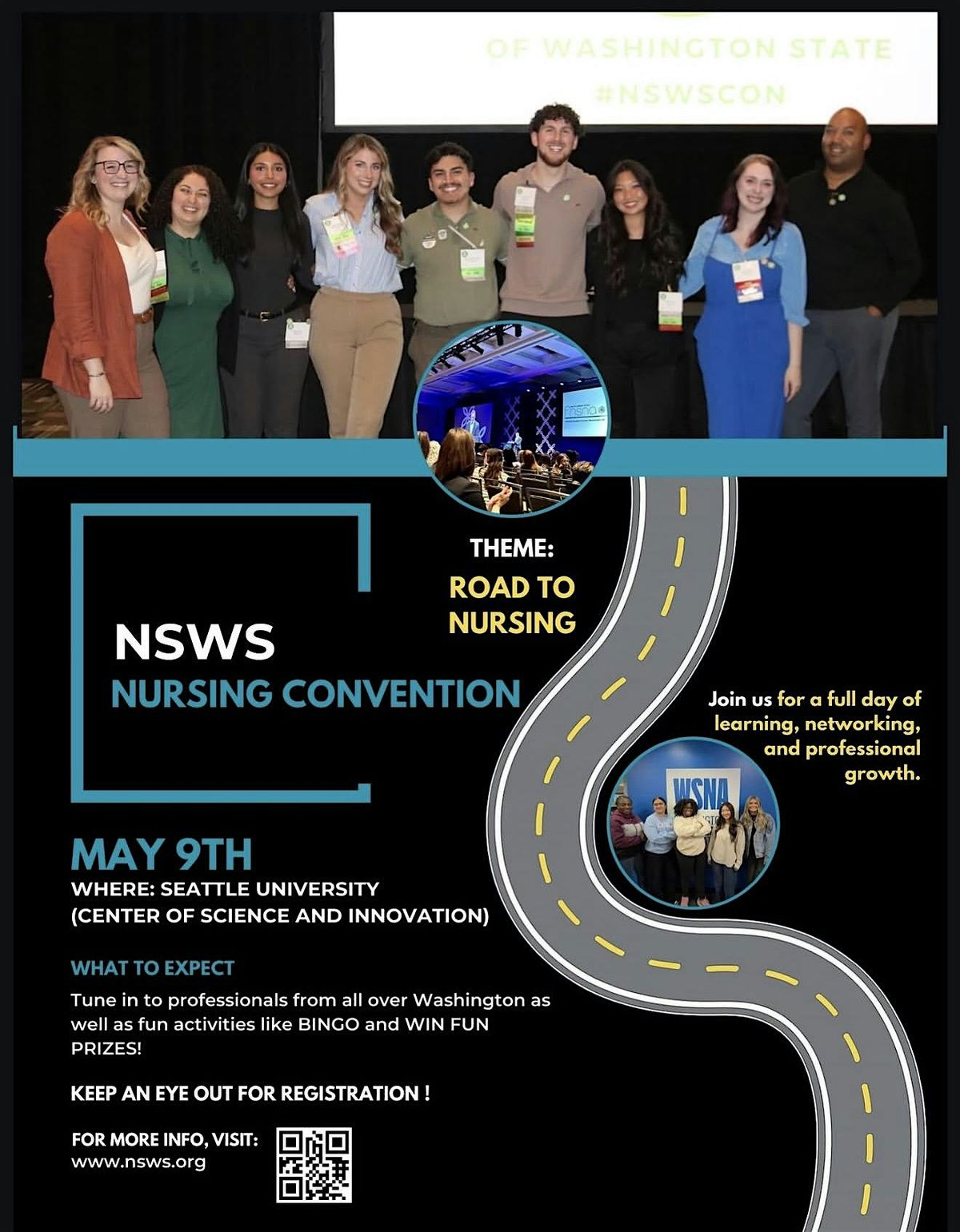 The NSWS Annual Convention is the place for nursing students to come together to learn tips and tricks for succeeding in nursing school and preparing for your post-graduate career with confidence. This interactive, hands-on event will feature speakers, a panel discussion, and plenty of time to connect with your peers. Additionally, a short business meeting will provide the opportunity to hear about the NSWS resolutions that were submitted to the NSNA national convention. Lunch and a morning snack will be provided. Consider running for NSWS office for next year’s board! More information and the consent to serve form can be found here: 2026 NSWS Convention — Nursing Students of Washington State. Questions? Email [email protected]