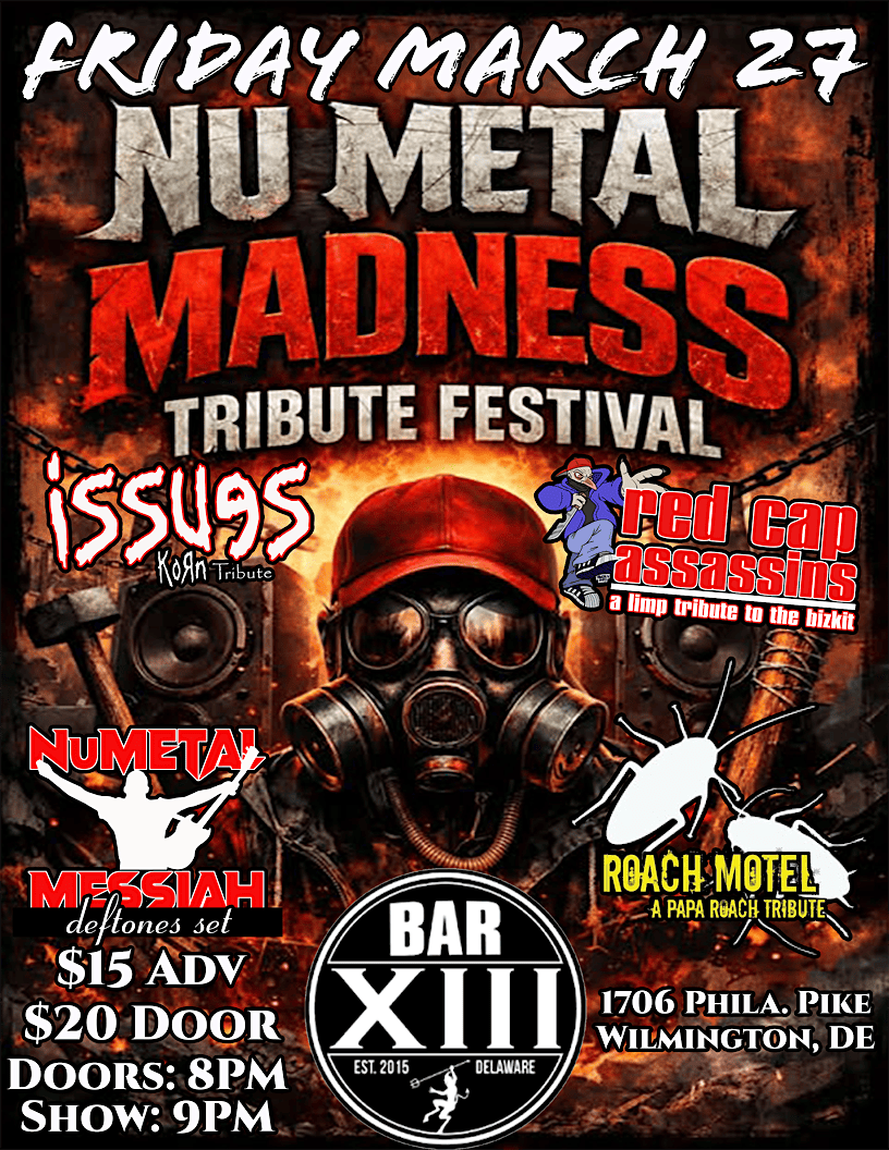Get ready for a full night of high-energy NU METAL as four powerhouse tribute acts take over Bar XIII! Experience the sound, attitude, and chaos of the biggest bands of the era β all in one insane night.