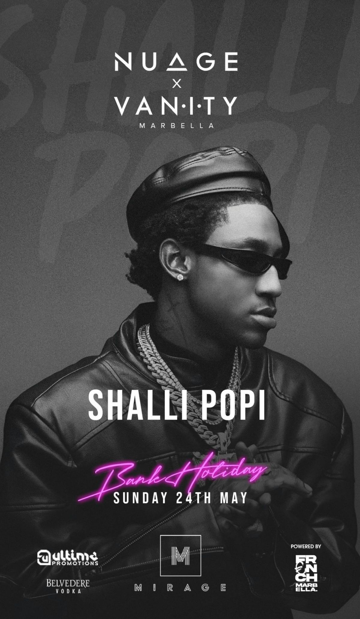 SHALLI POPI x VANITY @ MIRAGE MARBELLAwith FRENCH MARBELLALive at Mirage MarbellaFeaturing: SHALLI POPIDJs on the night:SHAYNE GIVEN - MAX DENHAM - AIKO - NEIL The best in RNB • HIP HOP • AFRO HOUSELimited tickets available.For tickets & table bookings — DM us now or +447583869218Mirage Nightclub • Marbella