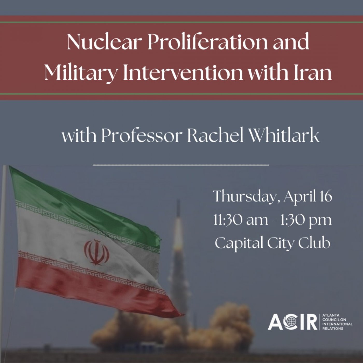 Prof. Rachel Whitlark, a political scientist and Associate Professor of International Affairs at the Georgia Tech Sam Nunn School of International Affairs, offers a rare look into the history and political science of using force to stop the spread of nuclear weapons, and applies it to the current situation in Iran.