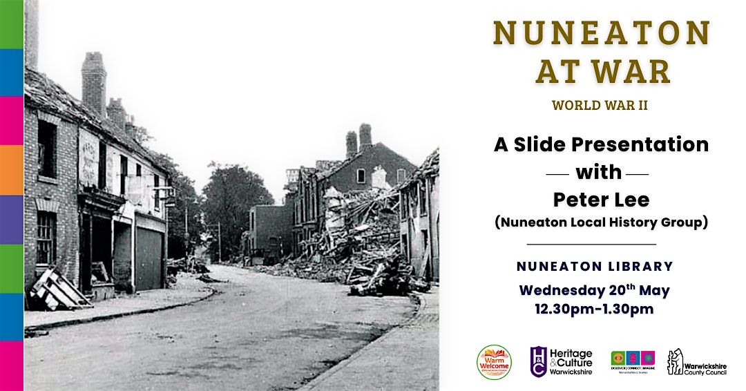 Join us at Nuneaton Library on Wednesday 20 May 2026, from 12:30pm to 1:30pm, for a fascinating talk exploring World War II and Nuneaton.