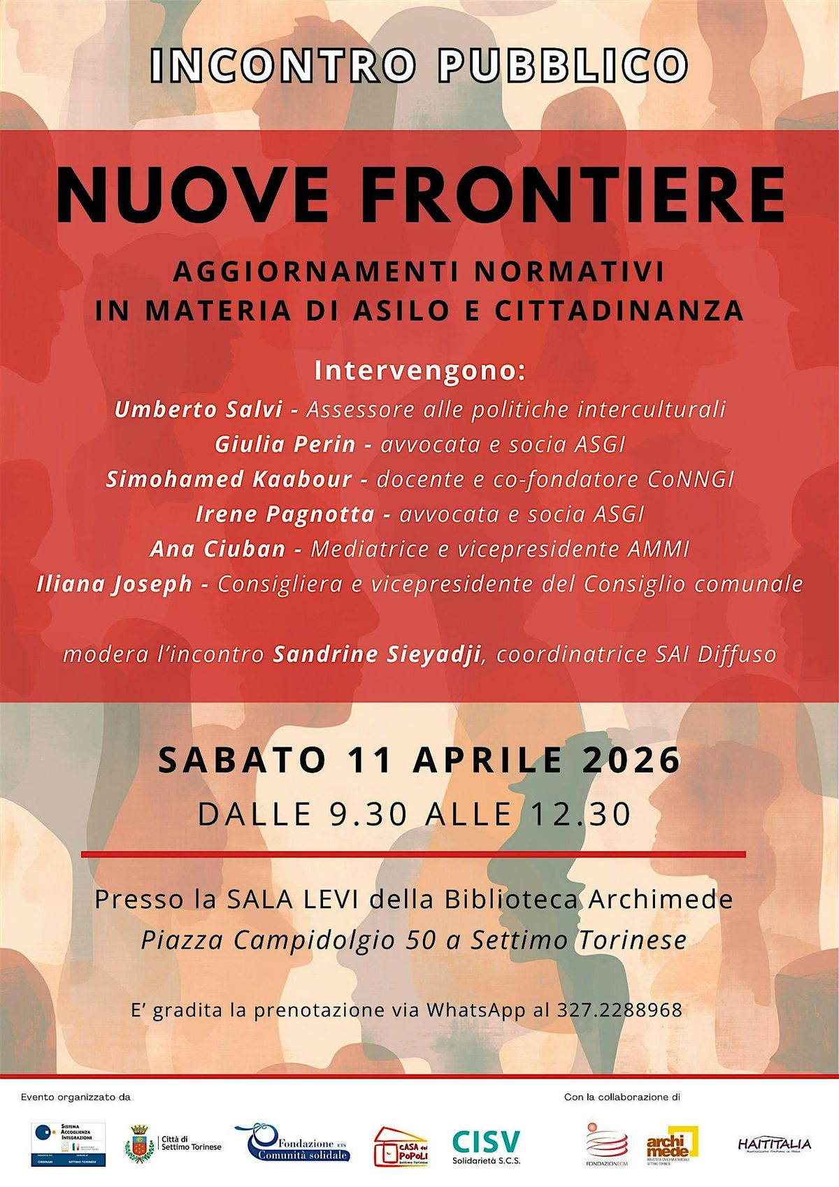 L'evento si terrà presso la Sala Levi della Biblioteca Archimede a Settimo Torinese, Sabato 11 aprile 2026 dalle 9.30 alle 12.30.