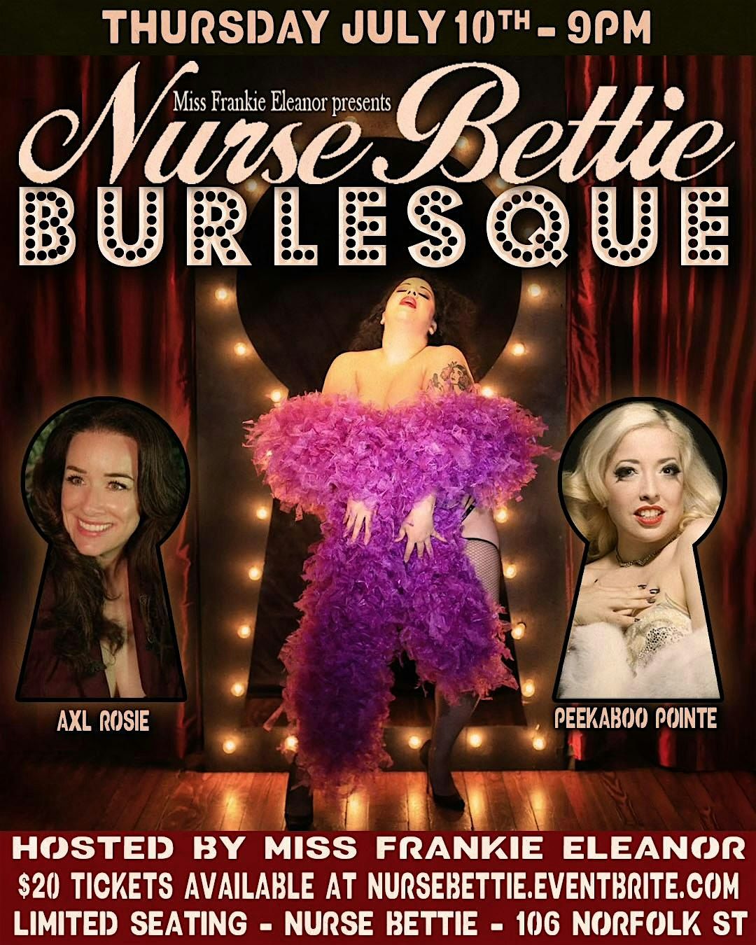 Miss Frankie Eleanor presents Nurse Bettie Burlesque! July 10th, 9PM. Featuring Axl Rosie & Peekaboo Pointe!About this Event