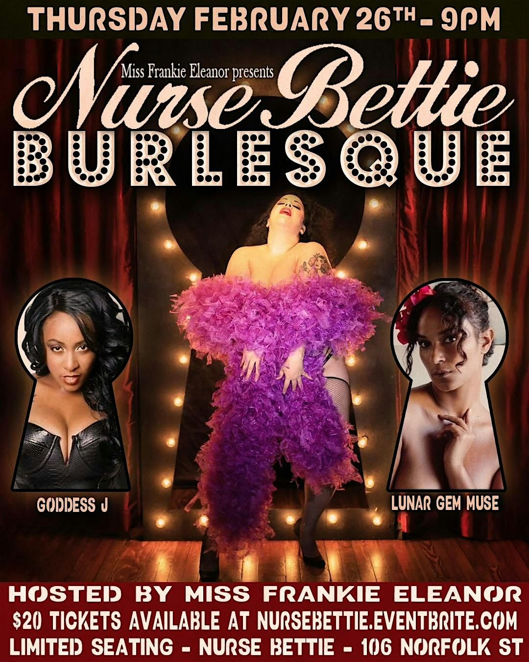 Miss Frankie Eleanor presents Nurse Bettie Burlesque! February 26th, 9PM. Featuring Goddess J & Lunar Gem Muse!About this Event