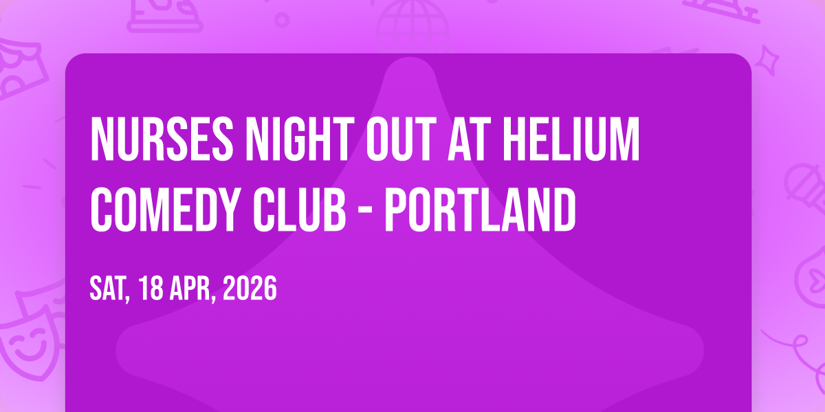 ✨ Discover the extraordinary at Nurses Night Out at Helium Comedy Club - Portland, where magic meets reality in ways you've never imagined! 🏛️ Set in Helium Comedy Club - Portland nestled in bustling Portland, OR, this event promises to be a landmark occasion. 📅 Taking place on April 18th, 2026 at 04:00 PM, it's going to create an atmosphere where every moment becomes a cherished memory. 🌟 Immerse yourself in an experience crafted with attention to every detail, designed to surprise and delight at every turn. They have worked tirelessly to ensure this event exceeds all expectations, bringing together elements of entertainment, innovation, and pure joy. 🎊 Don't miss your chance to be part of this remarkable journey!