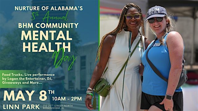 Nurture of Alabama, in collaboration with the City of Birmingham and Birmingham Park and Recreation Board, will host the 5th Annual City of Birmingham Mental Health Day on Friday,May 8th, at Linn Park from 10:00 a.m. to 2:00 p.m. This important community event aims to raise awareness, reduce stigma, and improve access to mental health resources across the Birmingham area.