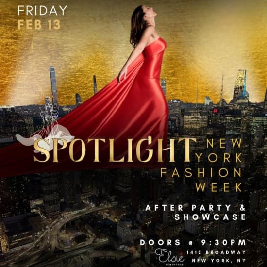 🎁 Gift this experience to your loved ones! Click here to check out our gift card. ⭐ NY Best Fashion Week Show + Party at Beautiful Elsie Penthouse is a glamorous fusion of fashion and nightlife in New York, NY. Get your tickets now for the NY Best Fashion Week Show + Party! Highlights 💃 Experience a dazzling fashion showcase featuring never-before-seen designs. 🎧 Dance the night away with multiple DJs spinning house music and top hits. 🍸 Indulge in handcrafted cocktails and exclusive VIP experiences all night long. 📸 Walk the red carpet and network with fashion elites and creatives. General Info 👤 Age requirement: 21+ with valid ID ♿ Accessibility: Yes 📍 Location / Venue: Elsie Rooftop, 1412 Broadway, New York, NY 10018 👗 Dress code: Dress to impress, no sandals or shorts. 🎵 Genre: House music and top hits Description Join NYFW’s largest penthouse after-party at the stylish Elsie Penthouse in Manhattan. Walk the red carpet and showcase your unique style before diving into a high-energy night filled with world-class entertainment. Dance to multiple DJs spinning house music and your favorite hits while enjoying a captivating fashion showcase. Sip expertly crafted cocktails and connect with models and creatives in a luxurious atmosphere. This is the ultimate blend of glamour, style, and nonstop fun in the heart of New York City. Get your tickets now!