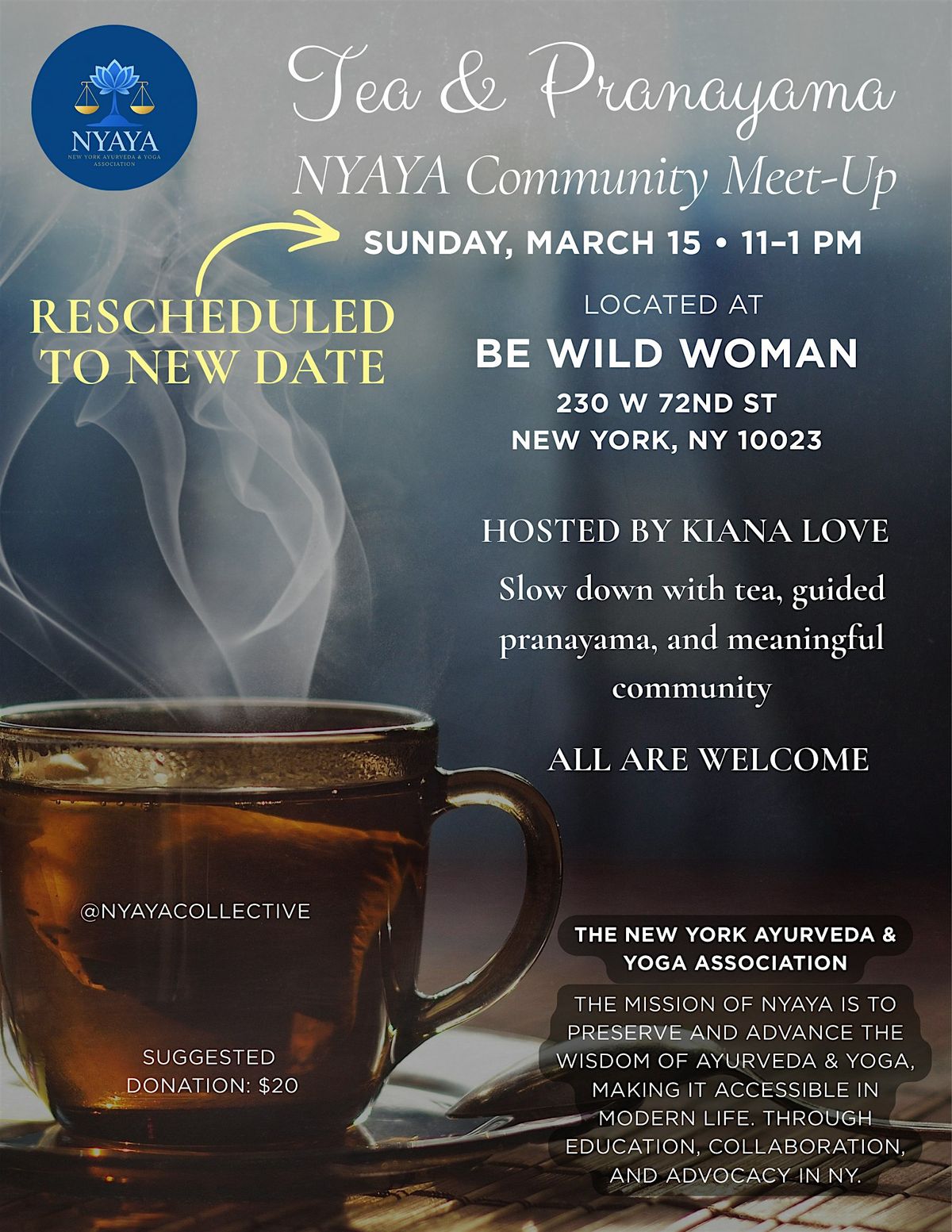 NYAYA Meet Up NYC: Tea & Pranayama for Yoga & Ayurveda Practitioners