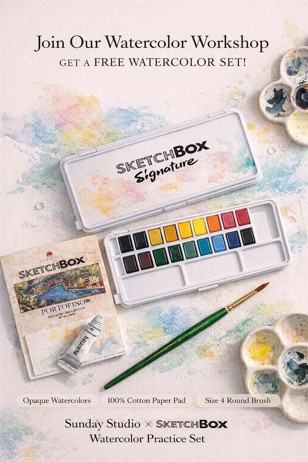 Beginners Friendly, take the free watercolor set home with you!