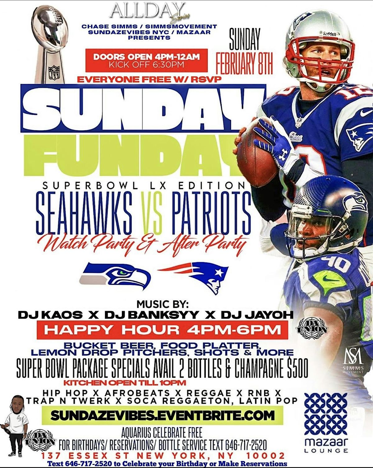 NYC Sundaze Vibes Sunday Funday NFL Super Bowl watch & after Party