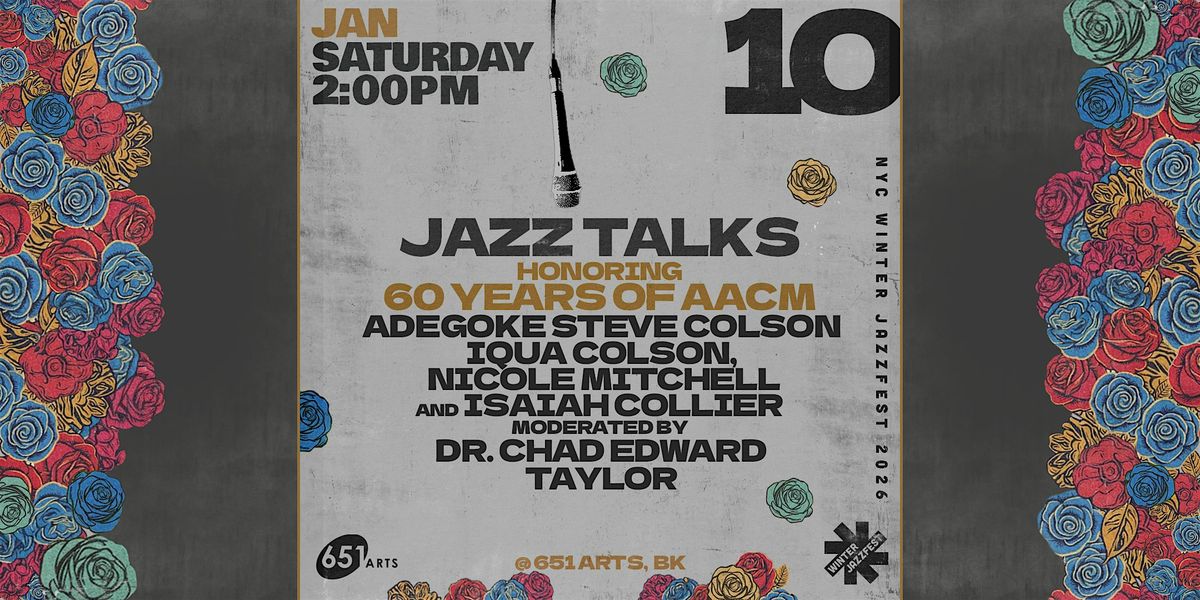 Iqua Colson, Adegoke Steve Colson, Nicole Mitchell, Isaiah Collier, moderated by Dr. Chad Edward Taylor. Join us for an engaging panel discussion featuring renowned musicians and AACM members Nicole Mitchell, Isaiah Collier, and early members of the AACM Iqua & Adegoke Steve Colson, with the esteemed Dr. Chad Edward Taylor serving as moderator. This thought-provoking dialogue will delve into the evolution of Black Creative music and the influence of the AACM (Association for the Advancement of Creative Musicians) on contemporary soundscapes over the last 60 years. Our panelists will share insights into their artistic journeys, explore their creative processes, and discuss the collaborative spirit inherent in the AACM community. Don’t miss this opportunity to witness a rich exchange of ideas and experiences among some of today's most influential voices in music!