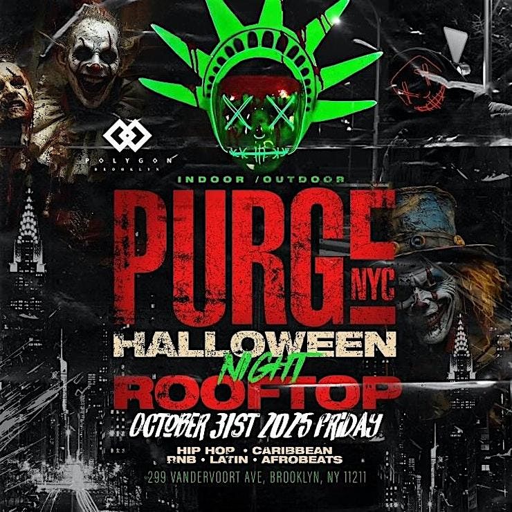 Celebrate Halloween at the Purge Halloween Party at Polygon in BK! Dance all night to Hip Hop, Caribbean and R&B,. Costumes and nonstop vibes!
