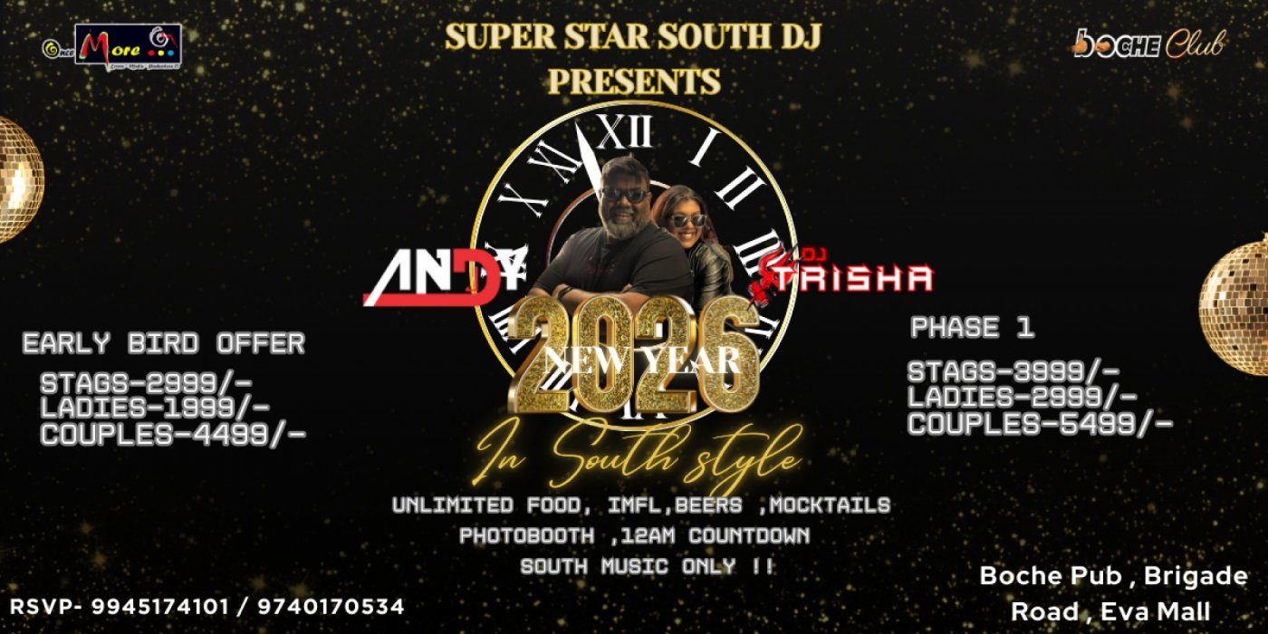 Are you ready to kick off New Year's Eve in style with a one-of-a-kind celebration? Join us for NYE 2026 - In South Style, by Super Star South DJ event featuring exclusive South music at Boche Club on Brigade Road.