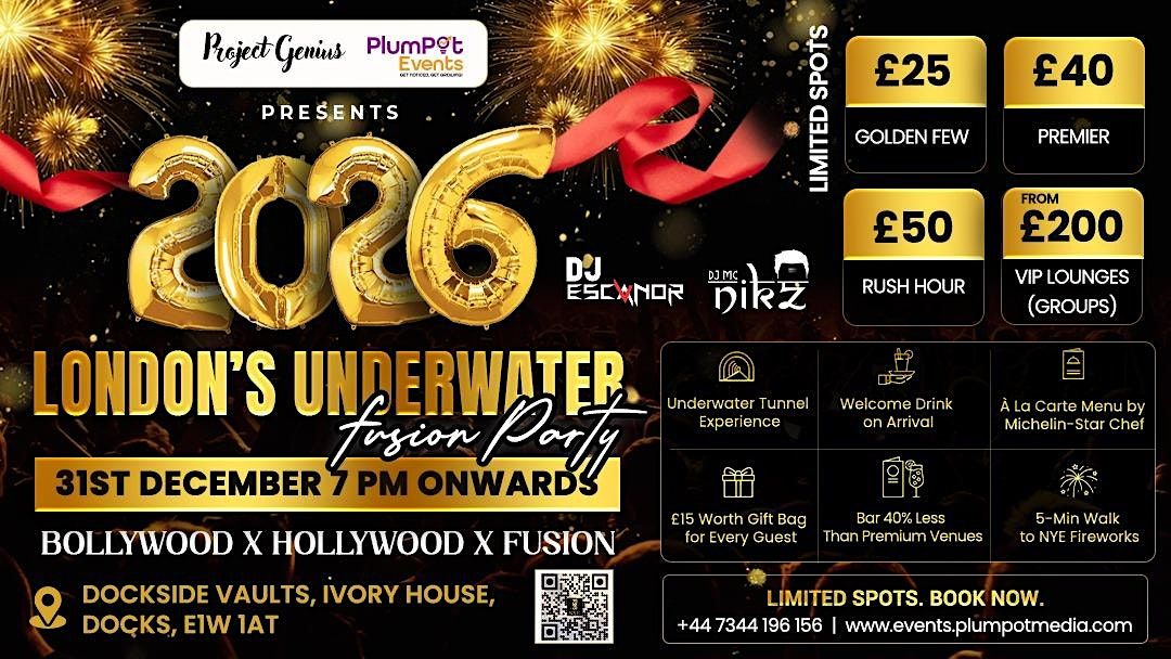 Celebrate the arrival of 2026 in spectacular style at Dockside Vaults, one of London’s most iconic underwater tunnel venues located 5 minutes away from the NYE fireworks viewing point.