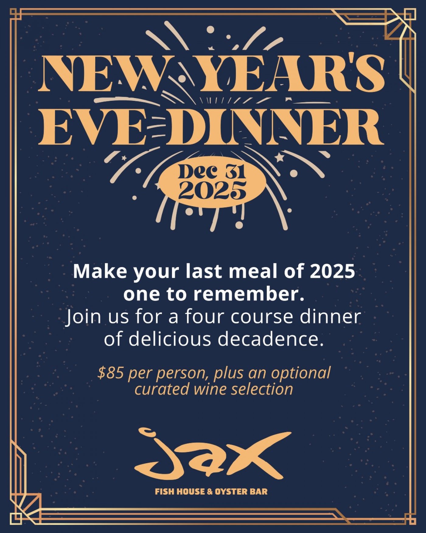 Make your last meal of 2025 one to remember. Join us for a four course dinner of delicious decadence.