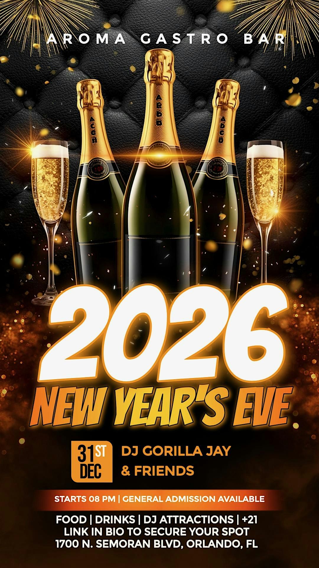 it’s time to flip the calendar and turn up the vibe! Pull up to Aroma Gastrobar for the livest New Year’s Eve party in the city. We got beats, bites, and big energy as we count down to midnight. 3 DJ;s on rotation. Is something you do not want to miss.