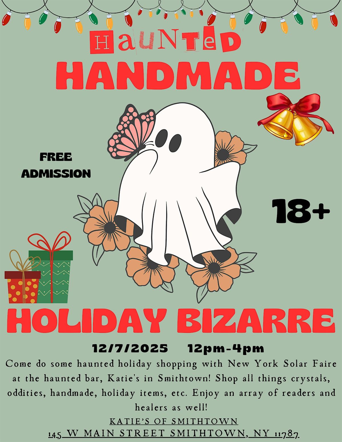 Come do some haunted holiday shopping with New York Solar Faire at the haunted bar, Katie's in Smithtown! Shop all things crystals, oddities, handmade, holiday items, etc. Enjoy an array of readers and healers as well! THIS EVENT IS 18+ ONLY