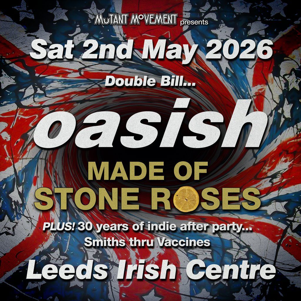 Voted the Best Oasis tribute, Oasish return to Leeds Irish Centre for a 5th year running, its a Double Bill to beat them all with Made Of Stone Roses!Artists