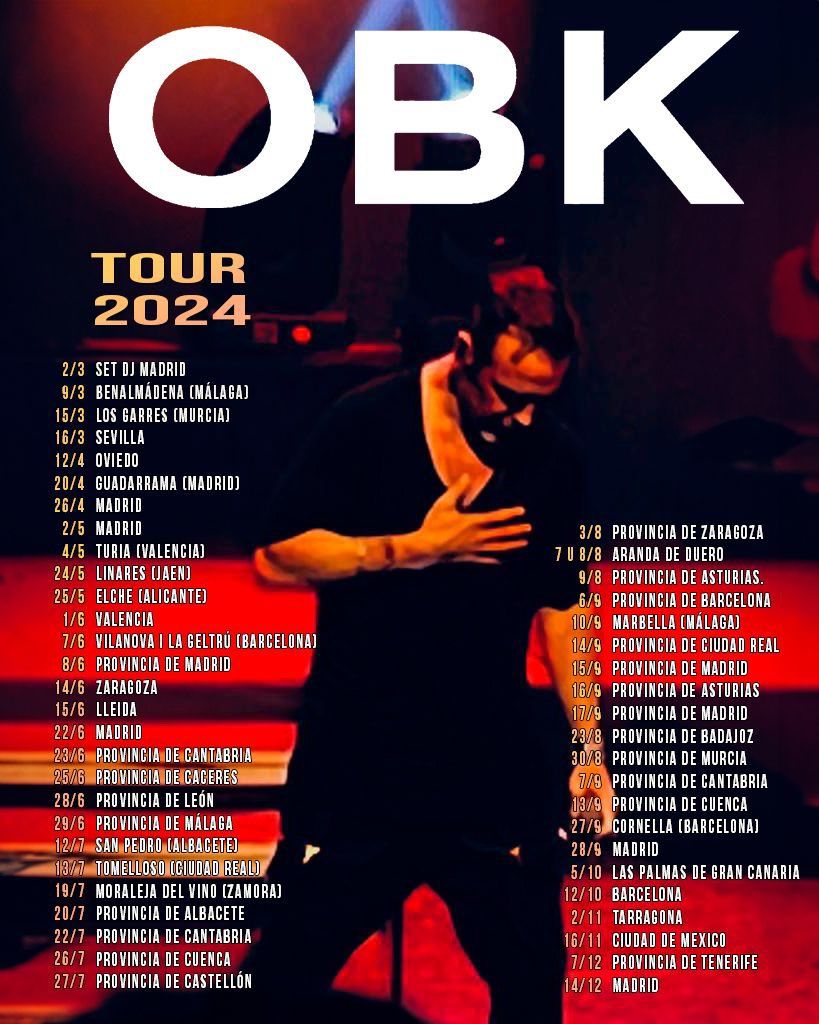 OBK at Palacio de Congresos Manuel Rojasโจ Enter a world of endless possibilities at OBK Badajoz Tickets, where every moment tells a story! ๐๏ธ The stunning Palacio de Congresos Manuel Rojas in vibrant Badajoz, EX transforms into a realm of wonder on April 25th, 2026 at 09:00 PM. ๐ They have crafted an experience that goes beyond the ordinary, combining elements of surprise, delight, and pure entertainment. Every detail has been thoughtfully considered to ensure your journey with us is nothing short of extraordinary. ๐ฏ Join fellow adventure seekers and memory makers in this celebration of imagination and innovation. ๐๏ธ Secure your spot with tickets at 185.00 EUR. ๐ Reserve your spot today and be part of something truly special!