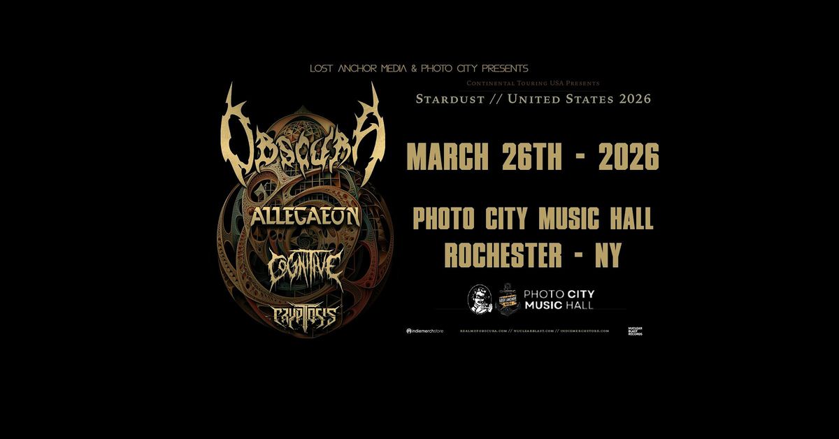 Obscura’s most significant accomplishment was, however, just around the corner. The final part of a tetralogy, Diluvium (2018), fiercely pursued Obscura’s multi-album transformation into musical innovators and metal powerhouses. Music videos for the title track, “Emergent Evolution” and “Mortification of the Vulgar Sun,” in concert with a substantial interest in virtuosic, forward-thinking metal, posited Obscura in the good graces (yet again) of the worldwide press in addition to rocketing up, for the very first time, the official album charts in Germany (#58) and Switzerland (#93). The Germans also topped out at #3 on the Billboard Heatseekers chart with Diluvium.