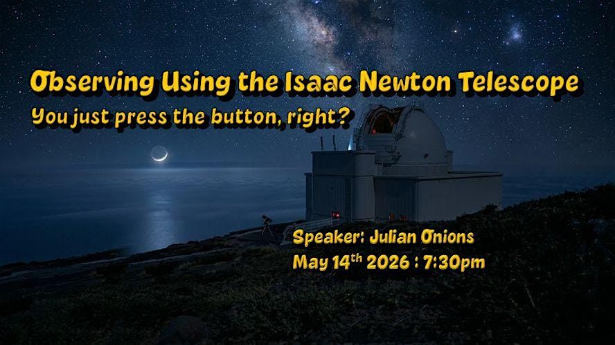 Our speaker Julian Onions is an astronomer working at the University of Nottingham. He looks with what we think the universe was like in the early days and then apply the laws of physics, and let it run in a very big computer, then look at what we've got and see if its like what we see. An observing trip to the Isaac Newton telescope. I got a chance to do