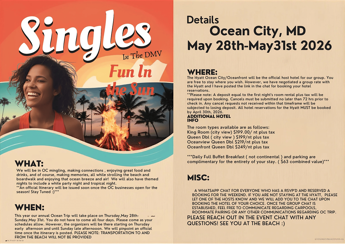 Join Singles in the DMV for our annual Ocean City Getaway May 28tn-