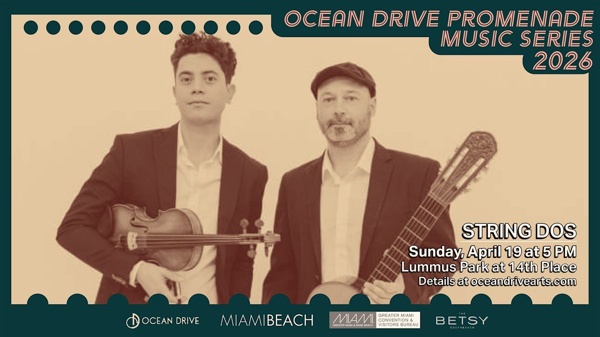 Join us on Ocean Drive on April 19th for a performance from String DOS as part of the Ocean Drive Promenade Music Series, a free, weekly concert series presented by the Ocean Drive Association. Pack a picnic blanket or lawn chair to stake out your seat on the lawn. Showtime is at 5:00 PM.