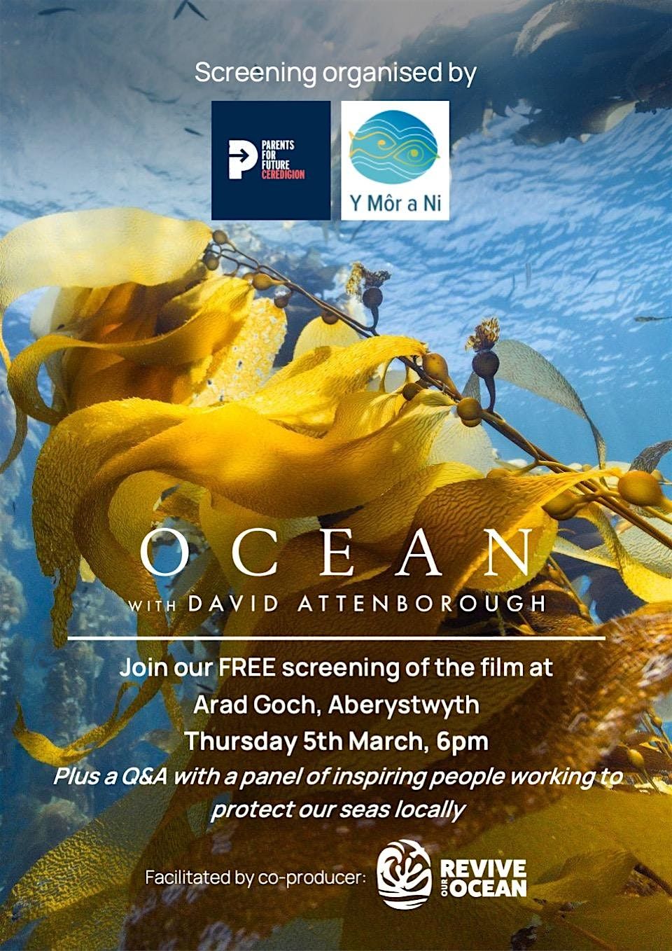 Join us for a free community screening of David Attenborough's remarkable documentary, Ocean, followed by a Q&A discussion with a panel of inspiring people working to protect our local seas.