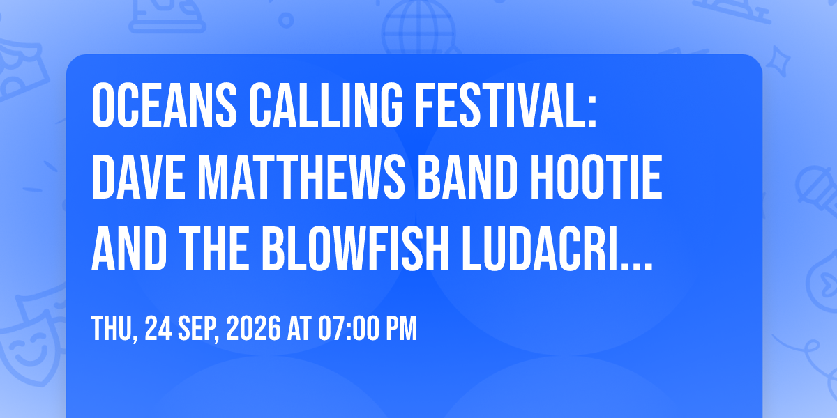 ✨ Embark on an extraordinary journey at Oceans Calling Festival: Dave Matthews Band Hootie and The Blowfish Ludacris & O.A.R. - Friday, where every moment promises to be unforgettable! 🌟 Imagine of transforming Ocean City Inlet in the heart of Ocean City, MD into a realm of endless possibilities. 📅 Join us on September 24th, 2026 at 07:00 PM for an experience that will challenge your imagination and exceed your expectations. 🎯 This carefully curated event combines the finest elements of entertainment, innovation, and community spirit. Whether you're an adventure seeker, culture enthusiast, or someone looking for unique experiences, this event offers something special for everyone. 🎊 Don't miss this chance to be part of something extraordinary!http://maps.seatics.com/OceanCityInlet_GAVIPPlatinum_2022-06-13_2022-06-13_1050_06132022_114053_SVGC_tn.png