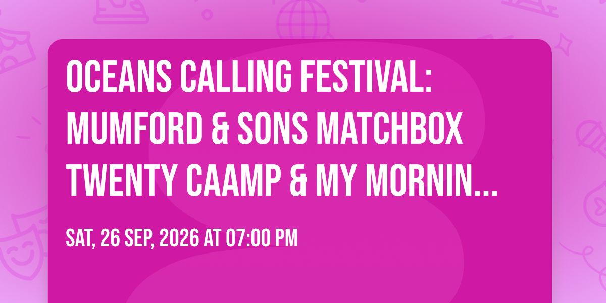 🌟 Step into a world of wonder at Oceans Calling Festival: Mumford & Sons Matchbox Twenty Caamp & My Morning Jacket - Sunday, where extraordinary moments await! 🏛️ Located at Ocean City Inlet in dynamic Ocean City, MD, this event will become the talk of the town. 📅 Join us on September 26th, 2026 at 07:00 PM for a celebration that defies the ordinary. ✨ This curated experience brings together the best of entertainment, culture, and community spirit. Every detail has been thoughtfully planned to ensure an unforgettable experience for all our guests. 🎯 Take advantage of this opportunity to be part of something special. 🎊 Early registration is recommended as space is limited!http://maps.seatics.com/OceanCityInlet_GAVIPPlatinum_2022-06-13_2022-06-13_1050_06132022_114053_SVGC_tn.png