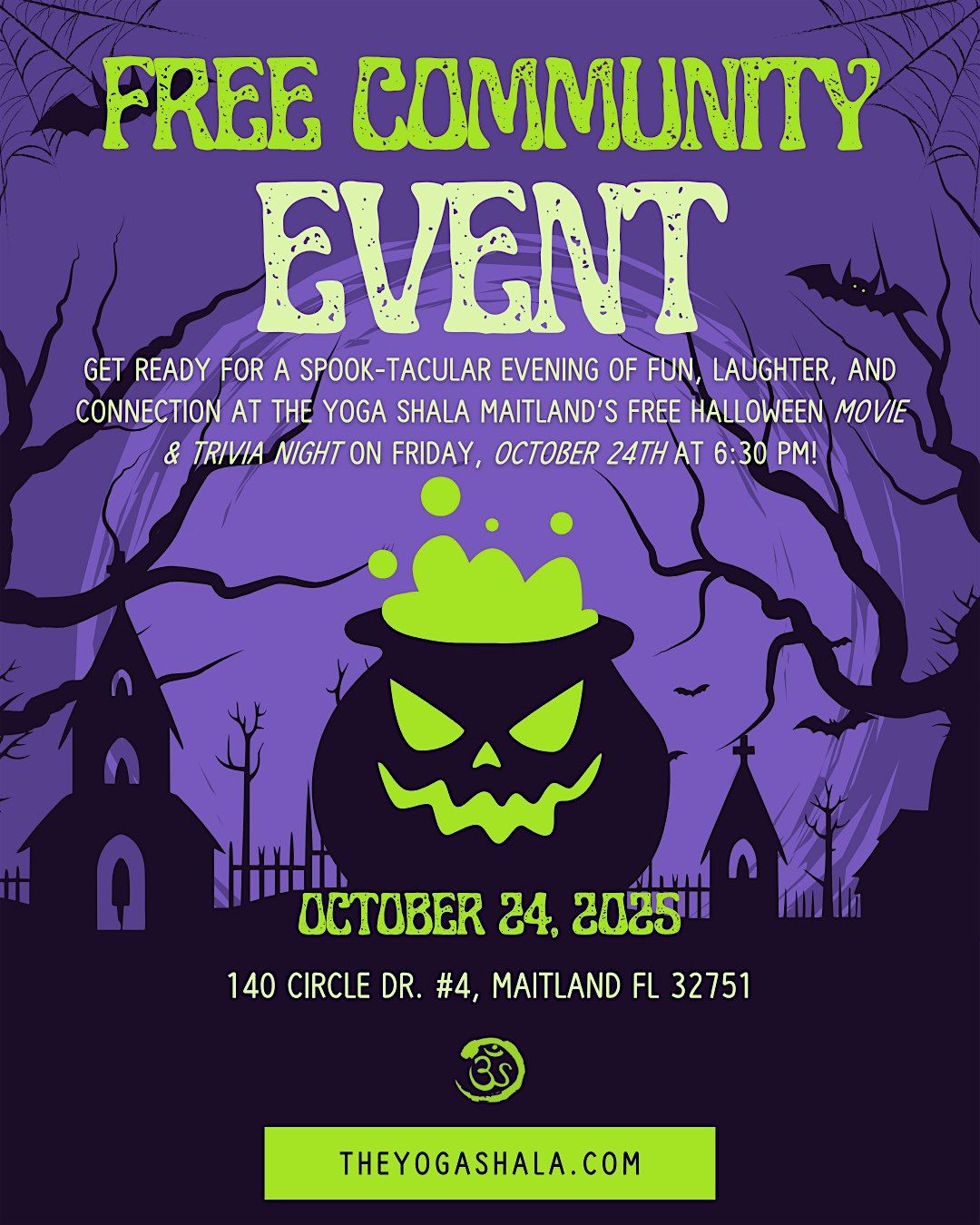 Join us at The Yoga Shala Maitland on Friday, October 24th at 6:30 PM for a fun, cozy, and connection-filled evening! Our Free Halloween Movie & Trivia Night is the perfect way to celebrate the season with laughter, treats, and community spirit. 👻✨