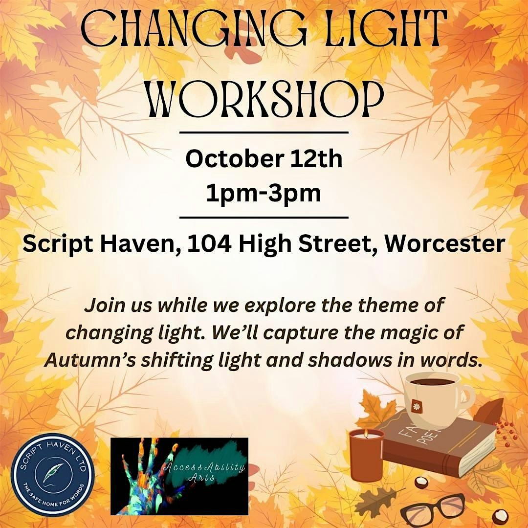 Join us on Sunday, October 12, from 1-3 PM at Script Haven for a poetry workshop exploring the theme of Changing Light. Weâll capture the magic of autumnâs shifting light and shadows in words. đŻď¸â¨