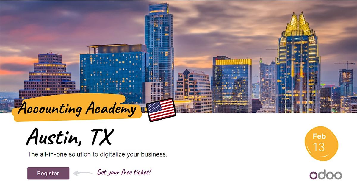 Welcome to the Odoo Academy in Austin, TX! Join us for an exciting in-person event focused on enhancing your skills with Odoo.