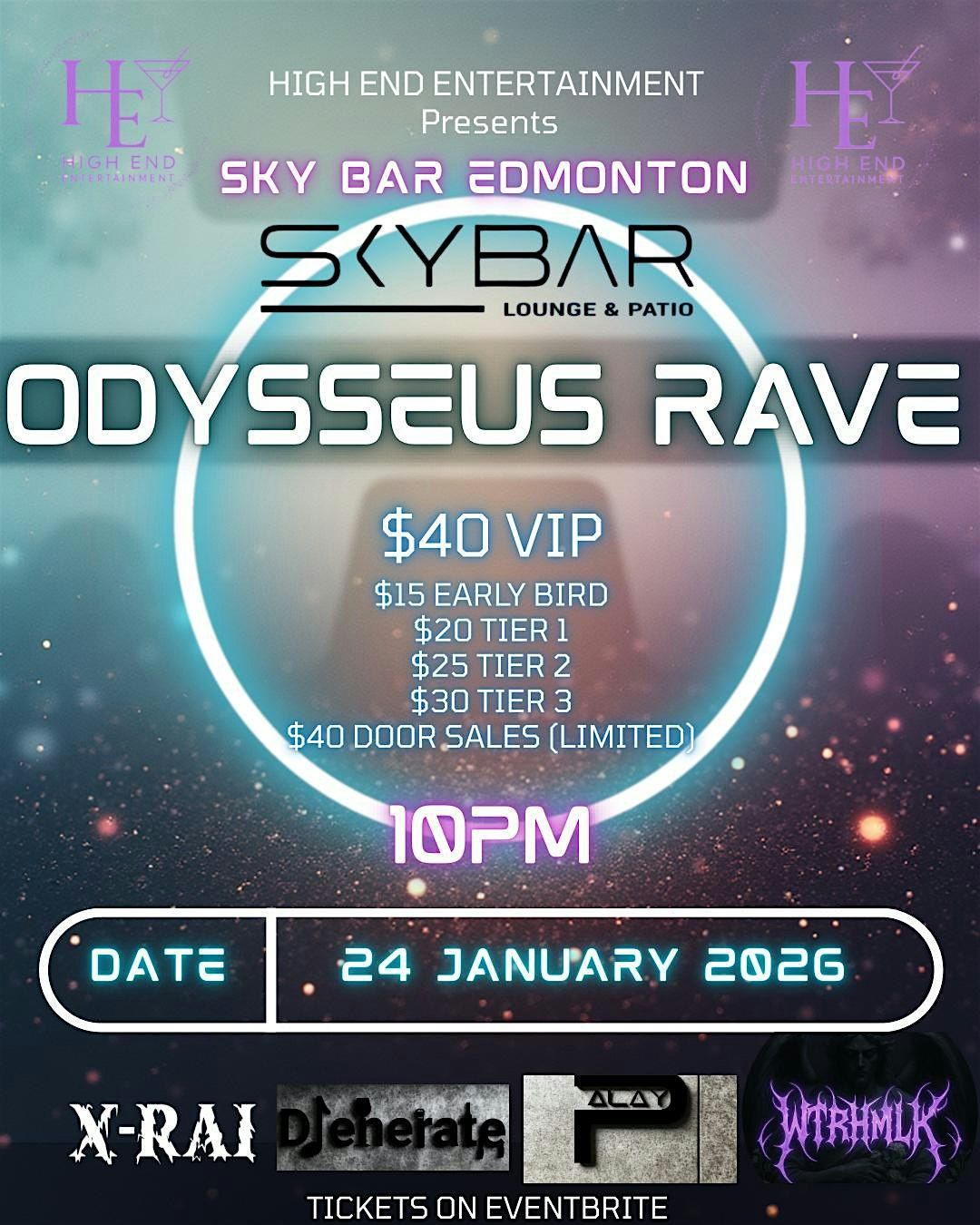 Join us for an epic night of vibes, beats, and good times at the Odysseus Rave! This is an in-person bash where you can dance your heart out and connect with awesome people. Don't miss out on the energy, the lights, and the unforgettable moments. Bring your crew and let's make some memories!
